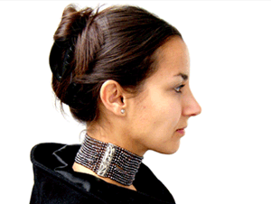 black pearls, silver The chernier-clasp of this 13-strand choker is embellished with a floral motif. Inspired from 1920s jewellery.