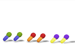 Multifärbige Ohrstöpsel aus Ohropax© sind mit geflochtenem Pampasgras verziert. Die an sich ausschließlich funktionalen Produkte werden so zu schmückenden Accessoires.